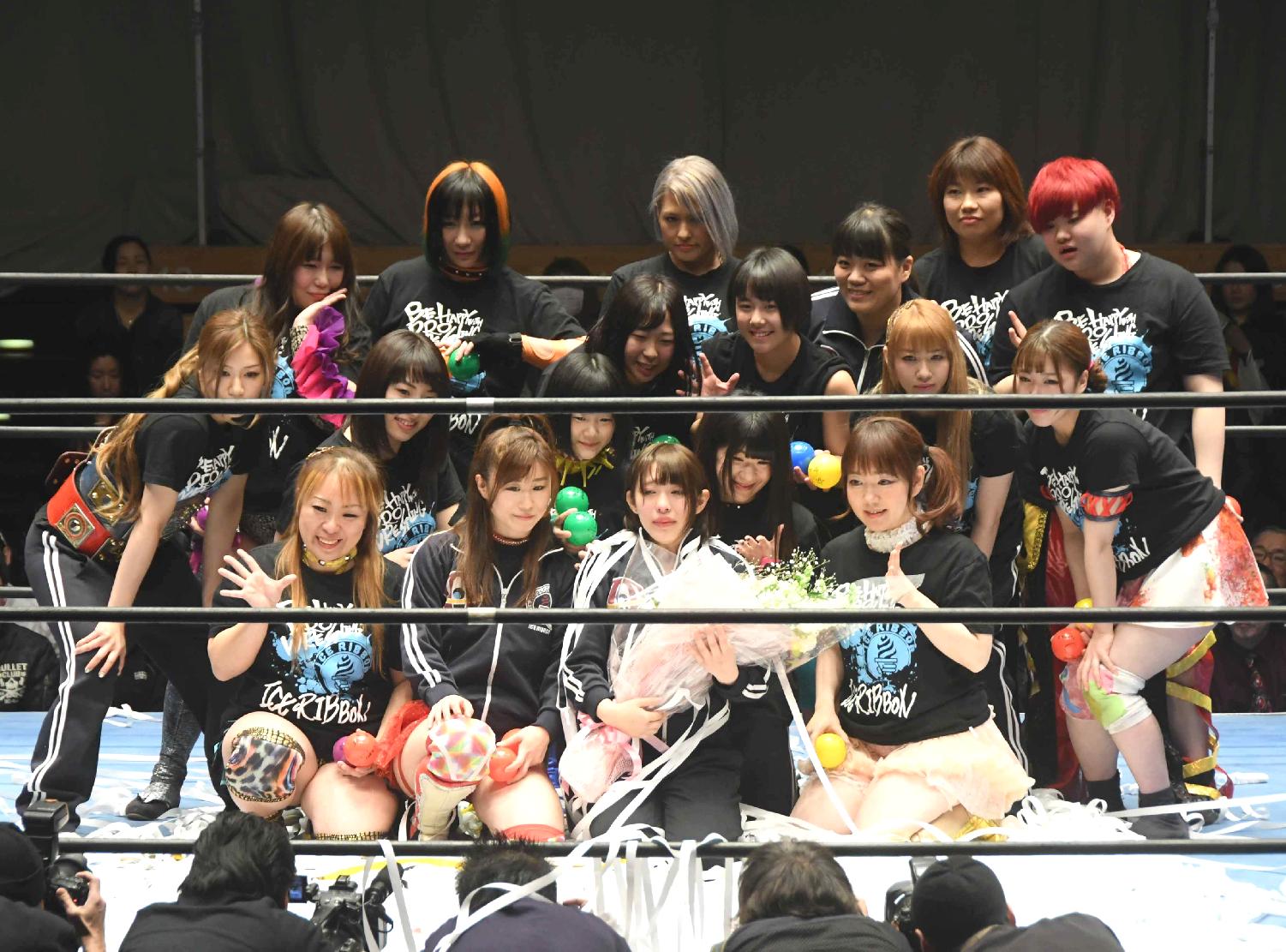 祭り」を絶唱し、観客の度肝を抜く。試合では大畠美咲と組みインターナショナルリボン